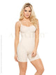 Bustless, mid back design, knee length design, side zipper with inner hooks, rear lifting panels the enhance your rear for a rounder shape, open gusset design for optimal comfort.